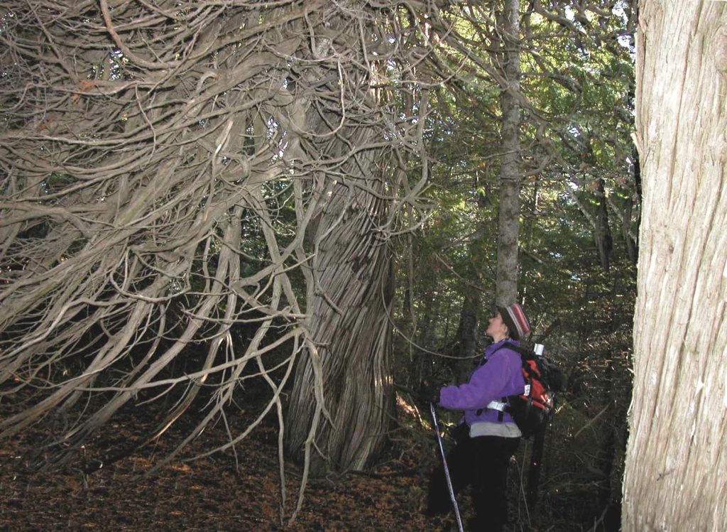 À l’époque, les comités régionaux du SIA avaient pour mission de tracer de 50 à 75 km de sentiers dans leur secteur respectif. « En Haute-Gaspésie, on devait déterminer à quel endroit on devait passer le sentier pour être le plus près de la falaise de L’Anse-Pleureuse sans que ce soit dangereux. C’est à ce moment que nous avons aperçu des cèdres thuyas qui avaient visiblement beaucoup de vécu. Je croyais même qu’ils auraient pu voir passer Samuel de Champlain et Jacques Cartier », explique le président fondateur du SIA, Viateur de Champlain.
