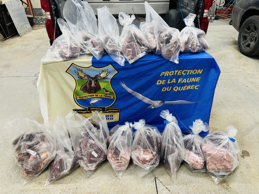 Le ministère de la Faune a indiqué que des perquisitions ont mené à la saisie de plus de 90 kg de viande de gibier, mardi. De plus, les agents ont procédé à des interrogatoires qui ont permis de faire progresser l’enquête qui se poursuit pour établir les chefs d’infraction et ultimement déposer des chefs d’accusation. Actuellement, de 5 à 10 chefs d’accusation sont envisagés.