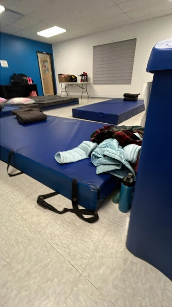 « On était presque 150 personnes. Tout le monde avait un matelas dans la chambre des joueurs, au plancher en haut, dans une salle communautaire. Il y avait de la nourriture, du café. Il y avait même un infirmier pour les gens qui auraient ressenti des douleurs. On a été bien pris en charge », souligne Sylviane Pipon.