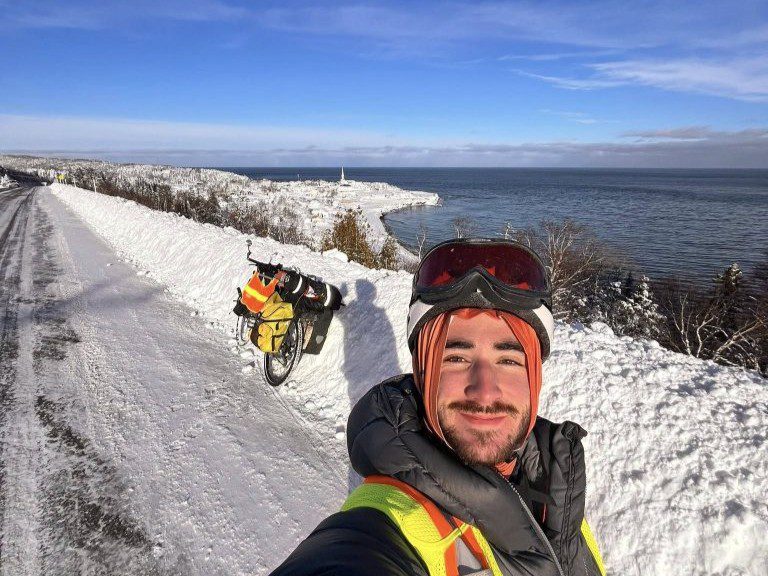 Sinon, des gens qui le suivent sur les réseaux sociaux lui offrent parfois le gîte ou un bon repas chaud. D’ailleurs, à son arrivée en Gaspésie, il a fait face à une tempête hivernale avec une visibilité quasi nulle et un tapis blanc sur les routes à perte de vue. « Les gens sont tellement accueillants en Gaspésie. Le monde est généreux et bienveillant. Ce fut comme ça tout au long de mon parcours. »